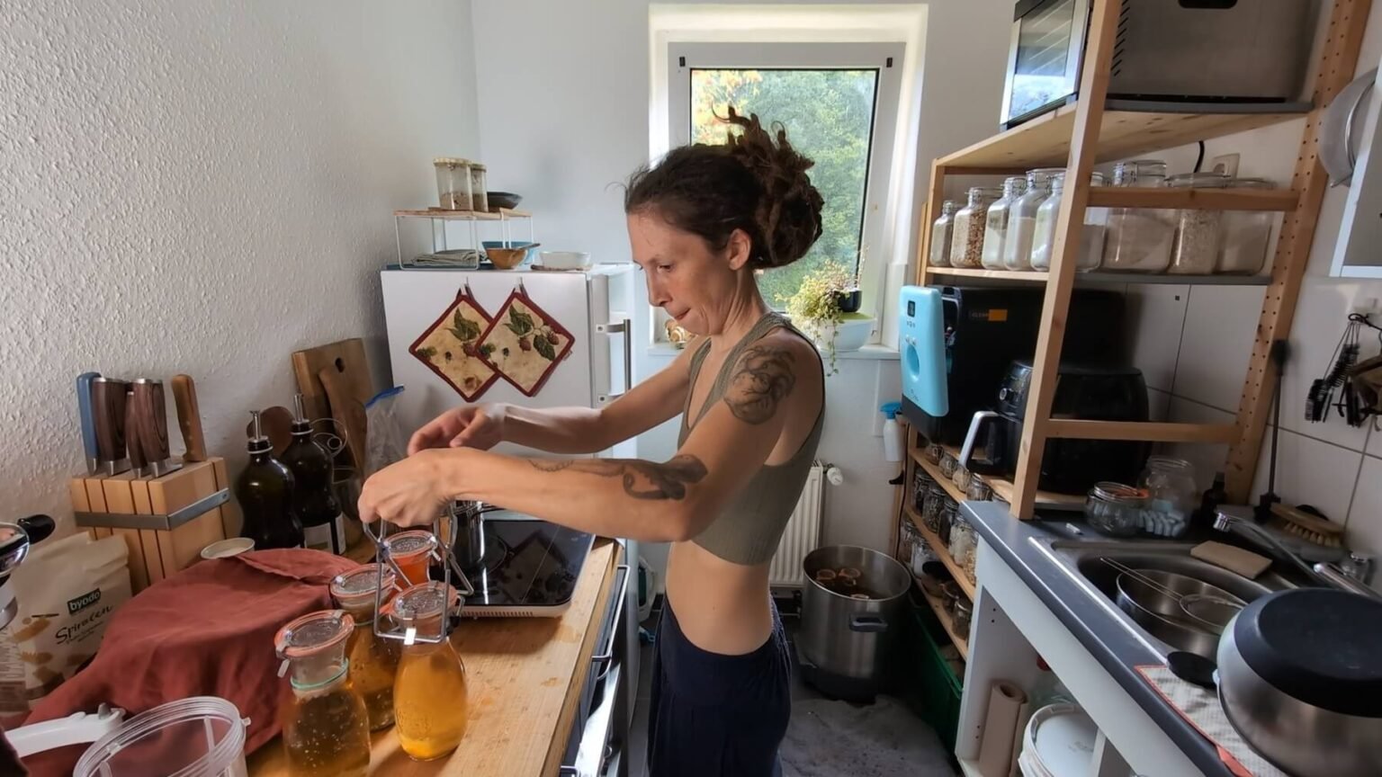 They store for a month in the fridge without canning, so I don’t worry about it. Now, we’ll have months to drink these. They won’t last that long.