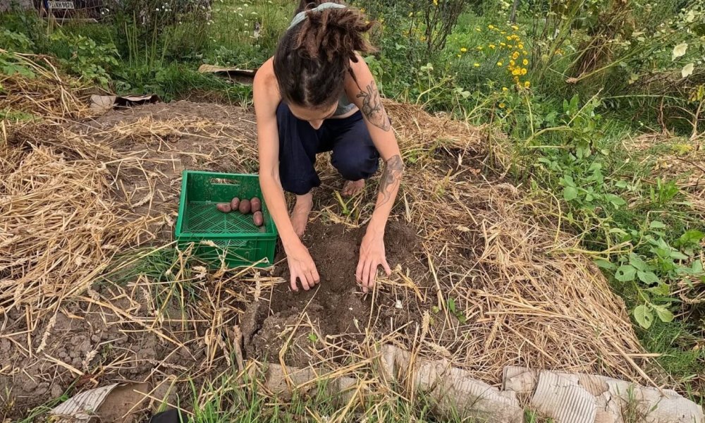 Two days after I’d abandoned the mushroom beds in a bad mood, my husband joined me in the garden to help. He flew the drone while I did some weeding, and then we got to work. Three mushroom beds, more ripe white currants, and a potato harvest were waiting.