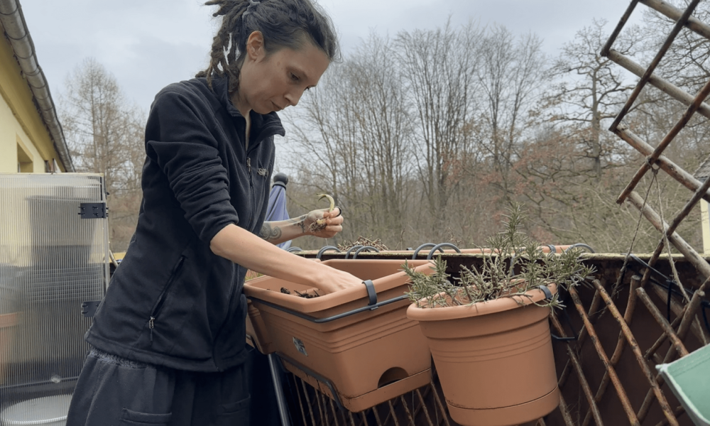 Spring is still playing tug-o-war with the remnants of winter here. But the occasional warmer days have me preparing for warmer days to come soon. I clean up our balcony, drive off more trash from the overgrown plot, and make very simple grilled-cheese sandwiches.